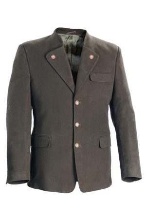 - Marynarka myśliwska w stylu bawarskim uszyta z ciemnooliwkowej tkaniny wełnianej we wzorze jodełki. Stójka wykończona tkaniną ircha. Z tyłu posiada rozcięcie z paskiem. Wewnątrz naturalna podszewka wiskozowa z czterema kieszeniami.Skład surowcowy:Tkanina wierzchnia: Wełna 65%, Poliester 35%Podszewka: Wiskoza 100%