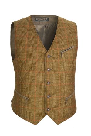 - Kamizelka z pikowanym przodem typu "slim" w kolorze jasno brązowym z motywem kratki z trzema kieszonkami zamykanymi na suwak. Wewnątrz w naturalnej wiskozowej podszewce. Do skompletowania z marynarką wykonaną z tej samej tkaniny. Skład surowcowy: Tkanina wierzchnia: Wełna 100% Podszewka: Wiskoza 100%